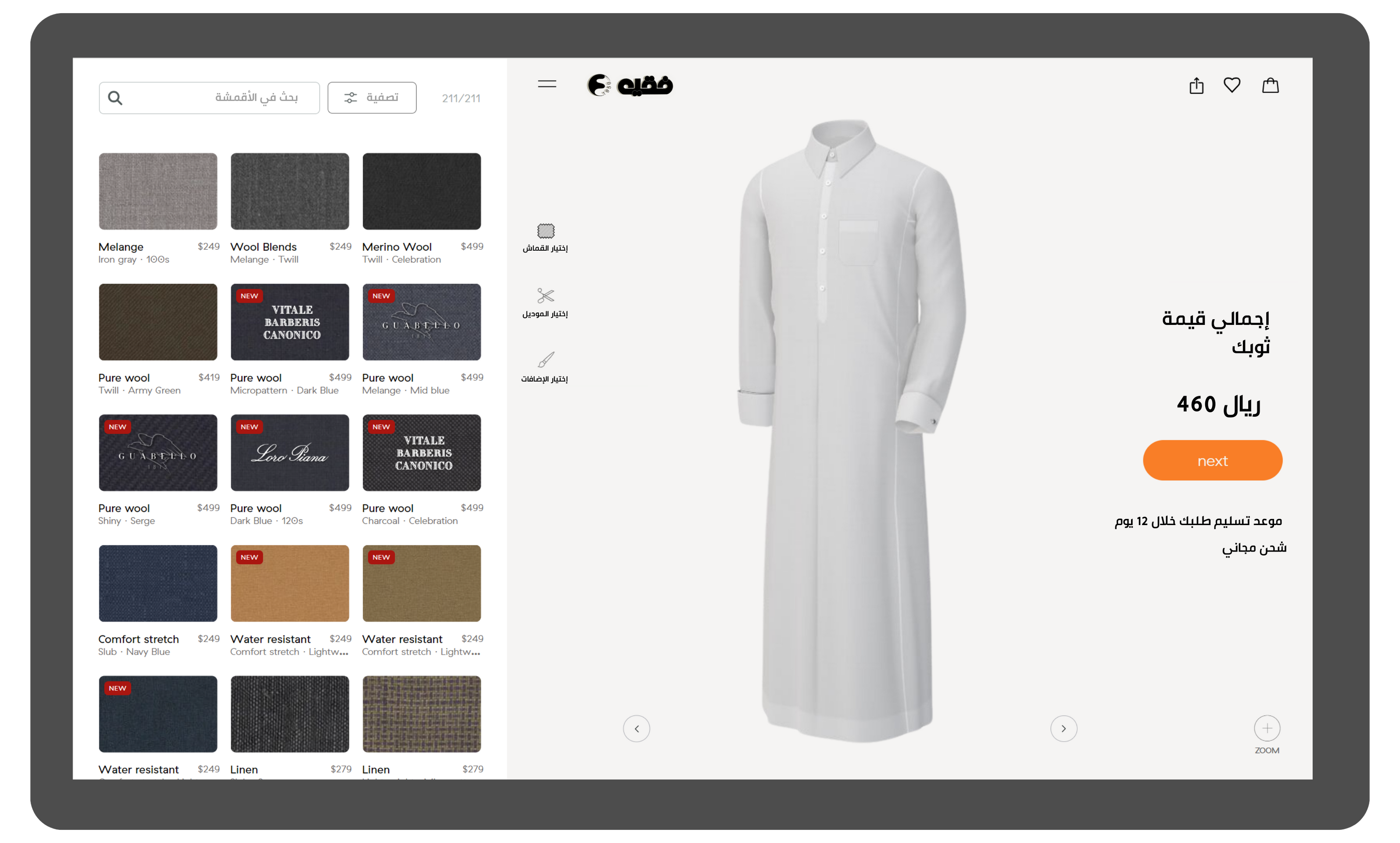 نوفر لك خدمة التفصيل وانت في مكانك , أينما كنت نحن نصل إليك لأخذ مقاساتك والبدئ في تفصيل ثوبك , الذي سيصل اليك خالل 7 أيام عمل . لا تتردد واتصل بنا الان